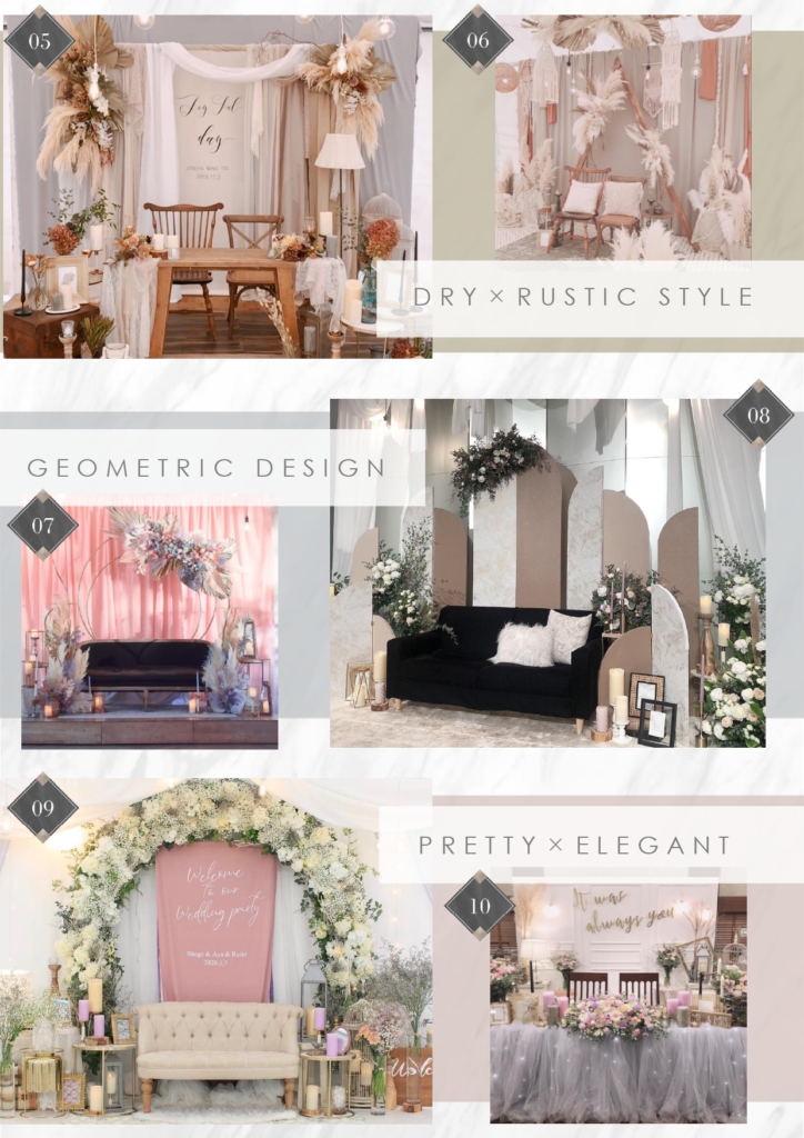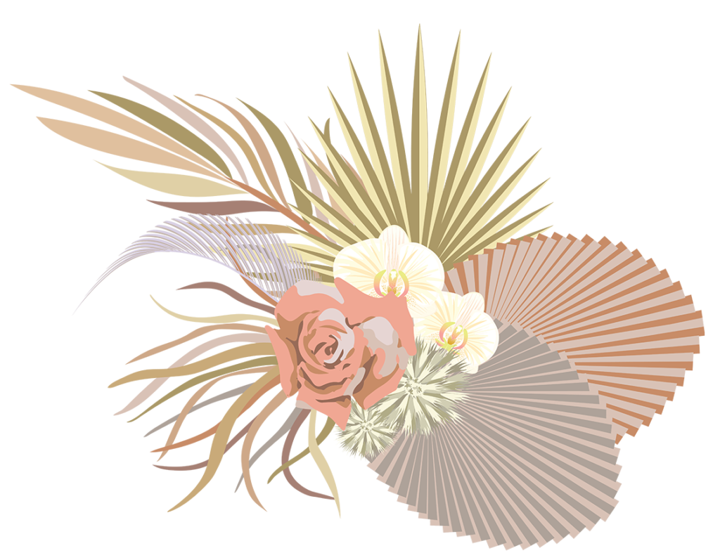 A. テーブル上などの生花は会場様提携の装花店様でのご提供となります。但し、デコレーションお打合せの際 に生花の種類や量、バランスに関して相談可能です 。デザインスケッチと一緒に後日プランナー様、生花店様へ 共有させて頂きます。また、造花で私共に依頼される場合は別途費用が必要です。